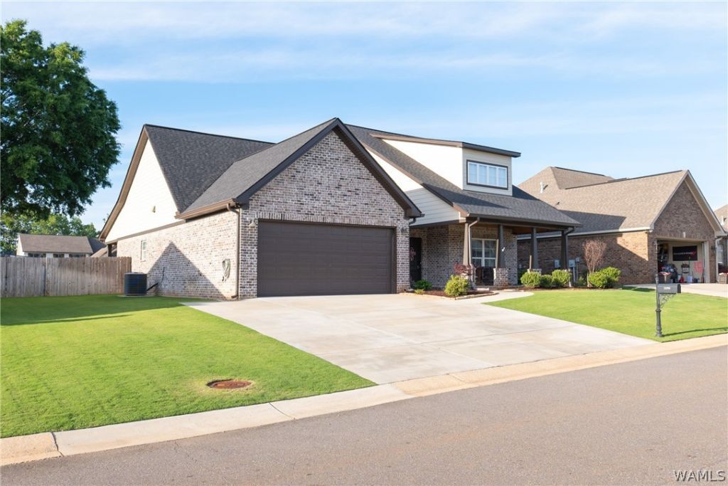 Custom built 4BR/3BA home in Glen Ridge in South Tuscaloosa. This well-designed home features granite countertops, custom cabinets with under-cabinet lighting, gas cooktop and oven, and a large kitchen island. LVP flooring runs throughout, offering both style and durability. The living area boasts 12-foot coffered ceilings, creating an open and inviting space. The spacious primary suite includes a double walk-in closet. Enjoy a fully irrigated lawn and a home pre-wired with ON-Q for modern connectivity. Glen Ridge HOA includes access to a neighborhood pool, adding to the lifestyle this home offers.
